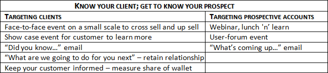 Does the mix differ when targeting existing clients versus prospective accounts?