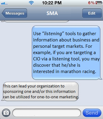 - Social media is a ‘slice and dice’ activity; a good way to get word out, including supporting marketing, products and HR.