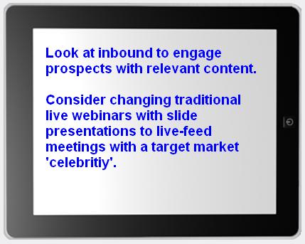 - Outbound is not going away but is more sophisticated; re-visit outbound tactics often