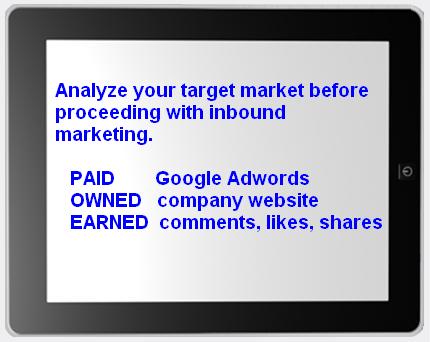 - Like any marketing activity, the target market should dictate what inbound marketing methods work best. Analyze and understand your market